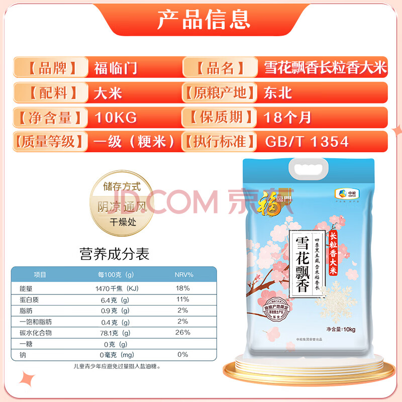 商品相册:福临门 雪花飘香大米 长粒香大米 20斤 东北大米第