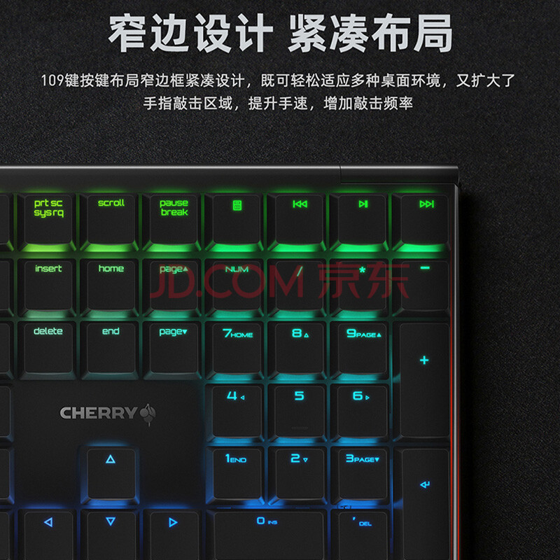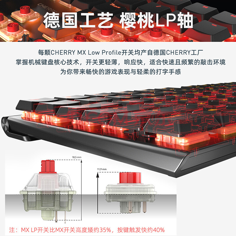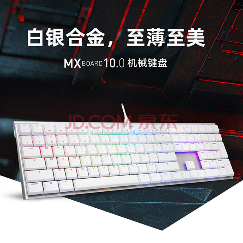商品相册:CHERRY樱桃MX10.0 有线键盘 游戏键盘 RGB灯效 超薄机身 办公键盘 合金外壳 白色 MX LP轴第
