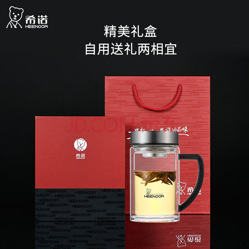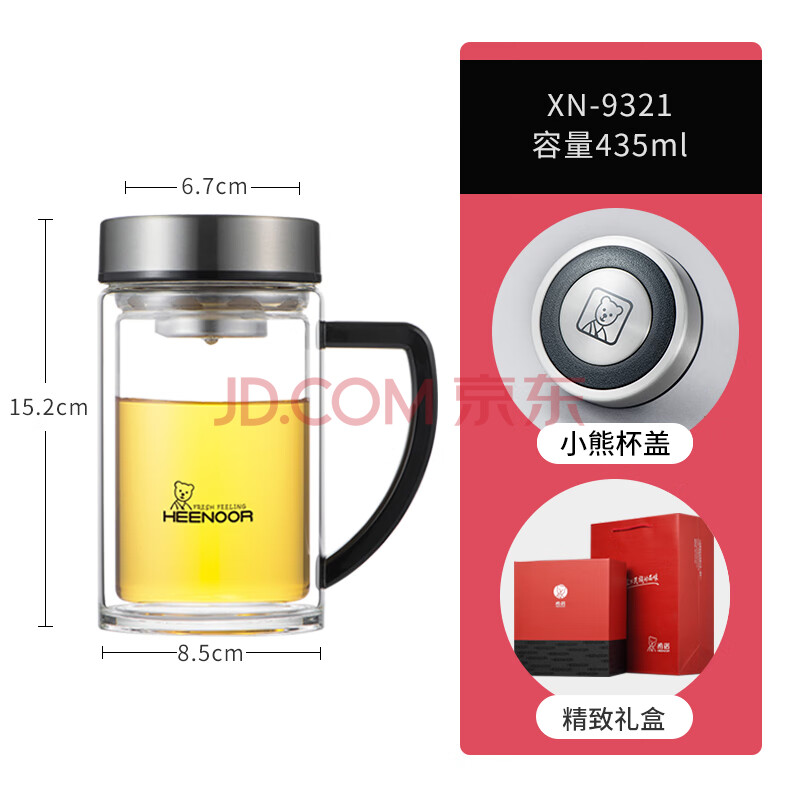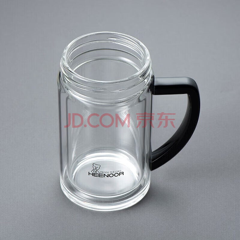 商品相册:希诺双层玻璃杯带把手高档泡茶杯子男家用办公透明水杯XN-9321 435mL第