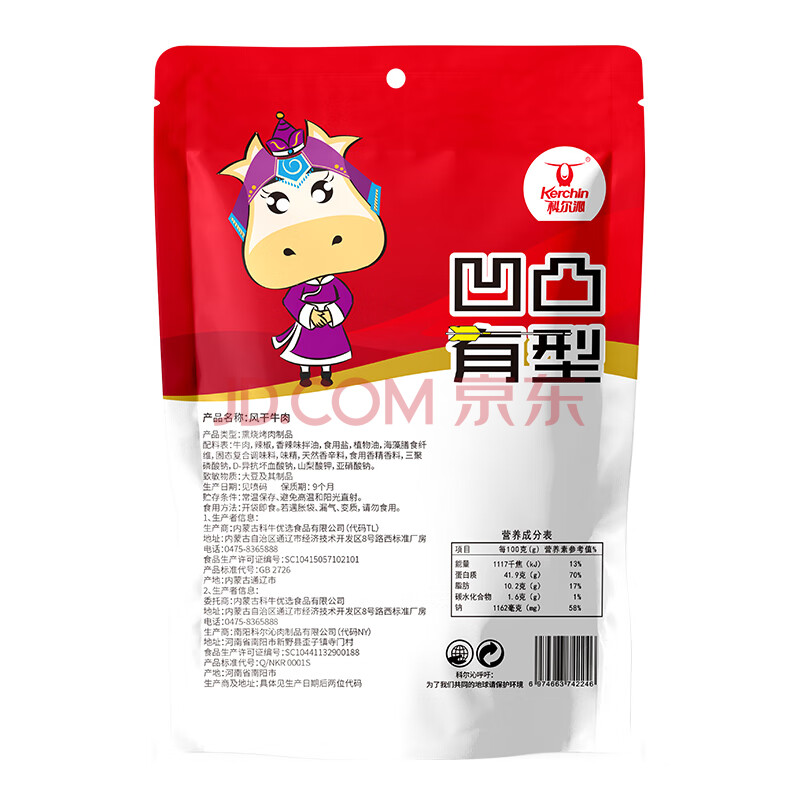 商品相册:科尔沁 凹凸有型风干牛肉干 辣味200g 小块肉干肉脯 休闲零食 第