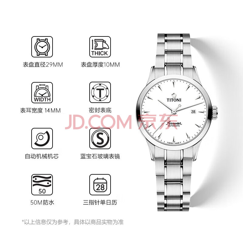 商品相册:梅花(Titoni)瑞士手表 女士机械表 空中霸王系列进口腕表钢带29mm送女友礼物第