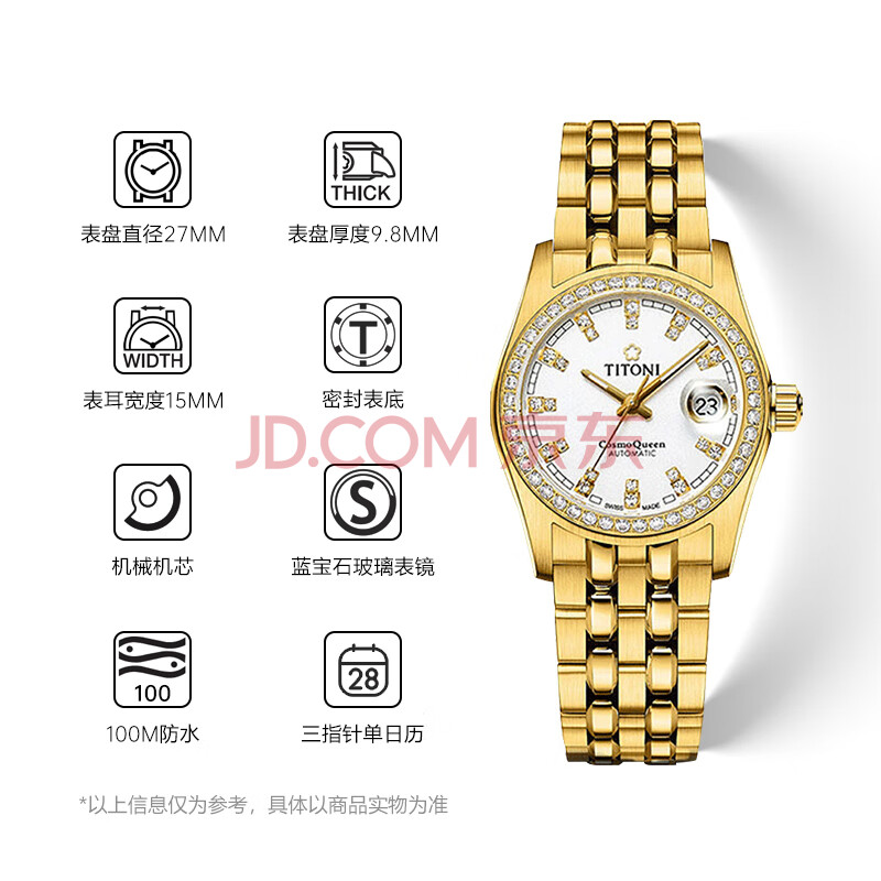 商品相册:梅花(Titoni)瑞士手表 宇宙系列 自动机械钢带女士进口腕表729-G-DB-541礼物第