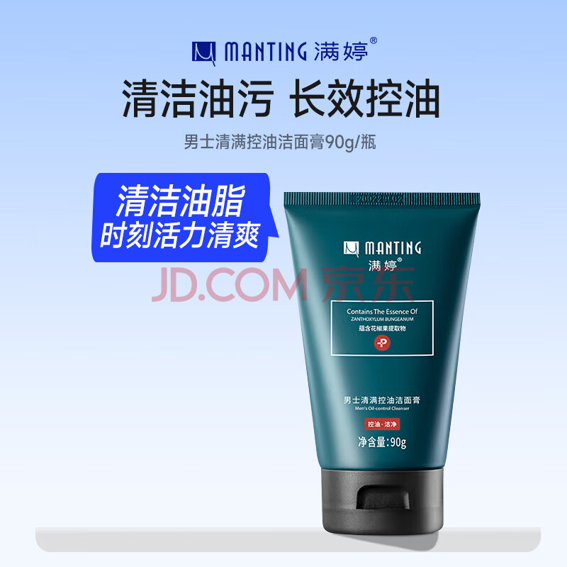 商品相册:满婷(MANTING)男士清满控油洁面乳90g(专用洗面奶油性皮肤去油深层清洁)第