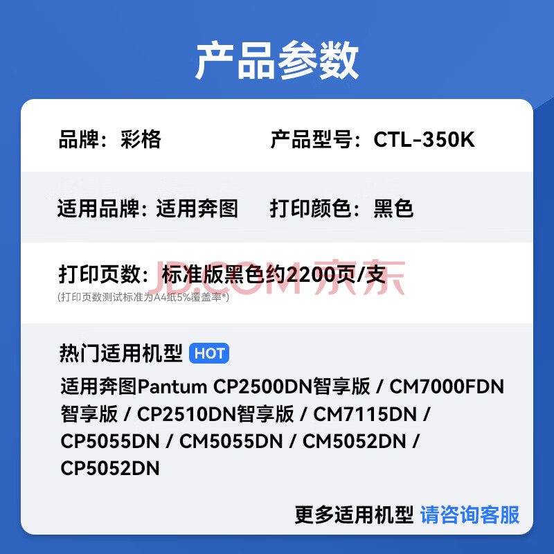商品相册:彩格CTL-350K-BK 粉盒适用奔图CP5055DN CP2500DN粉盒 CM7000PDN智享版CP2510DN墨盒CM7115DN打印机硒鼓CM5055dn第