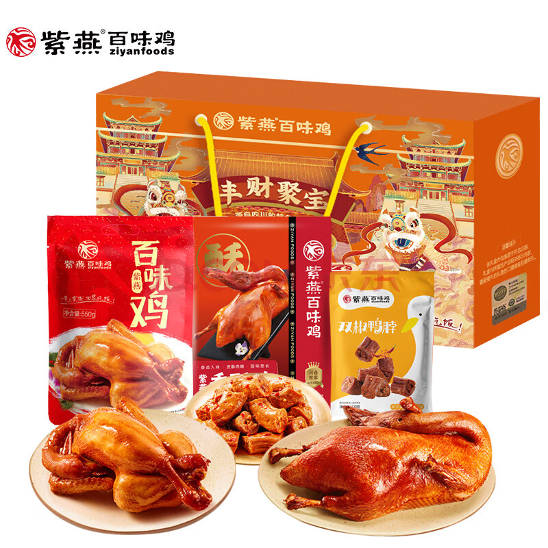 商品相册:紫燕百味鸡高端礼盒熟食卤味肉类零食烤鸭烧鸡送礼长辈父母预制菜鸡鸭1070g第