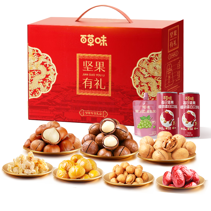 商品相册:百草味零食礼盒1235g/1260g混发 送礼含夏威夷果零食大礼包团购第