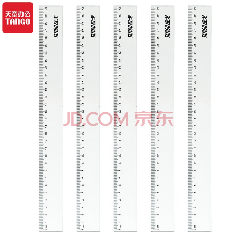 商品相册:天章办公(TANGO)20CM直尺刻度尺办公学习通用透明塑料尺子绘图测量刻度直尺5把/组第