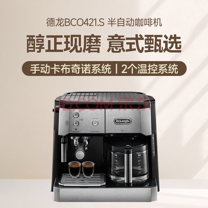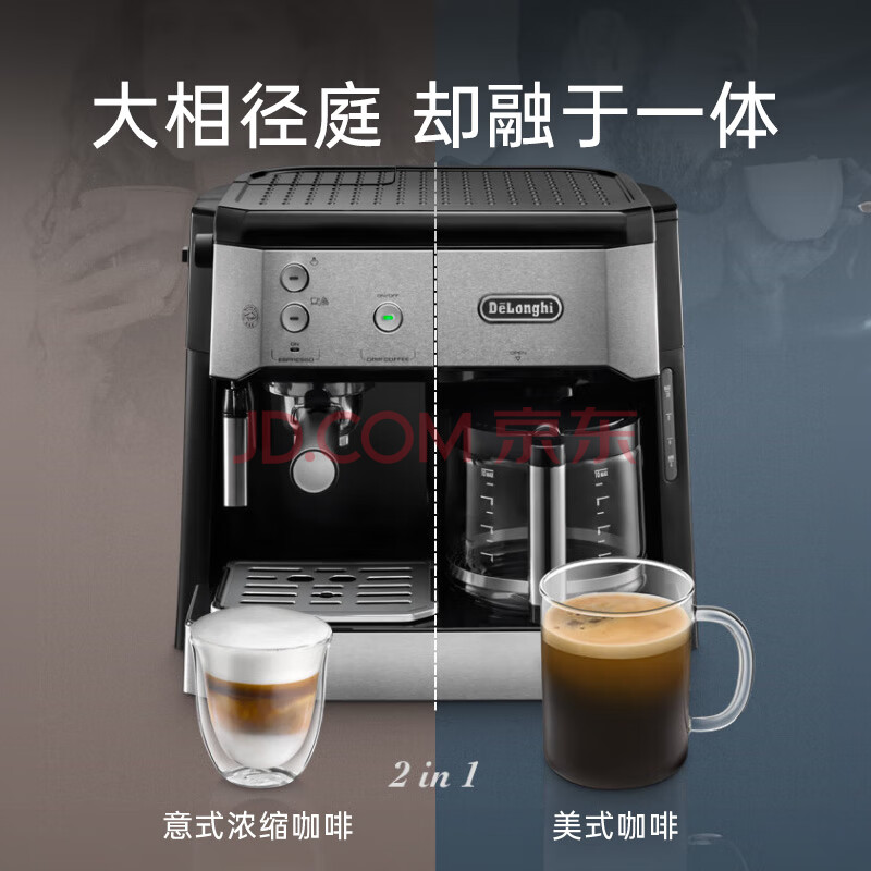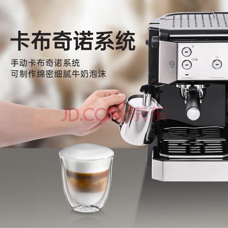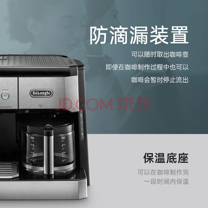 商品相册:德龙(Delonghi)咖啡机 家用半自动咖啡机 美式滴滤意式浓缩一体机小巧手动打奶泡 大容量咖啡壶保温 BCO421.S礼物第
