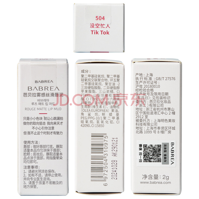 商品相册:芭贝拉(BABREA)哑光口红雾感丝滑唇泥2g 504没空忙人第