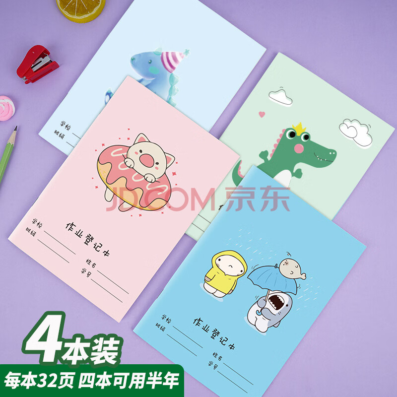 商品相册:西玛(SIMAA)家庭作业登记本 A5/32页 记录加厚作业本软抄本笔记本子记事本子 4本装 XDJ3第