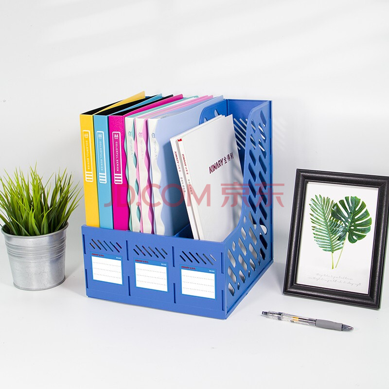 商品相册:金得利三联镂空桌面文件框 加厚升级 三栏带标签稳固文件架文件栏 收纳文件筐资料框办公用品蓝色SN163第