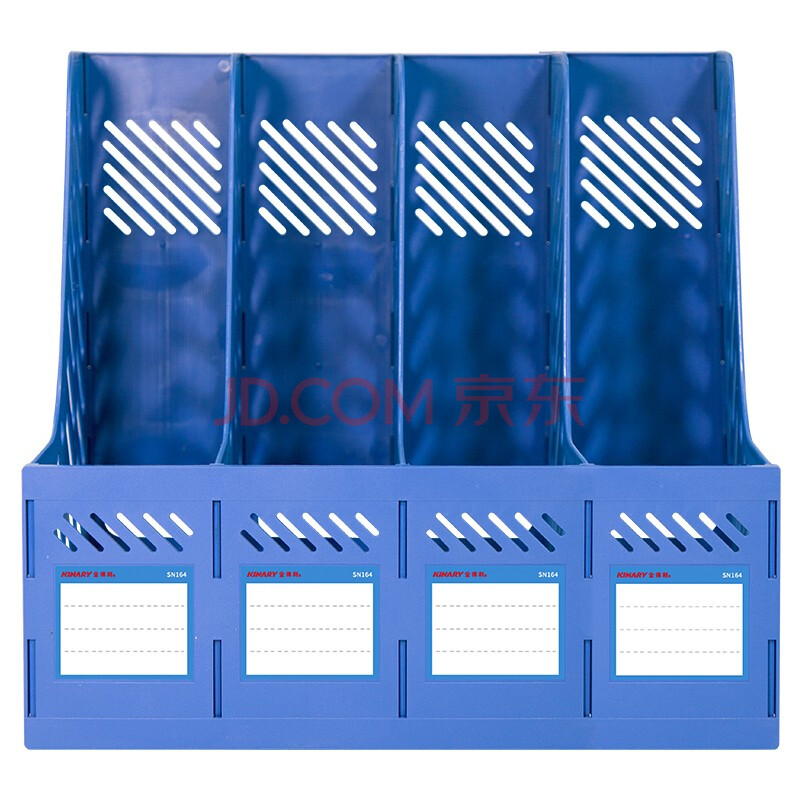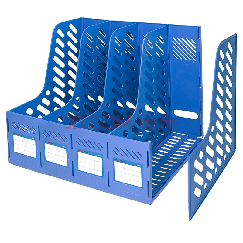 商品相册:金得利四联镂空桌面文件框 加厚升级 四栏带标签稳固文件架文件栏 收纳文件筐资料框办公用品 蓝色SN164第