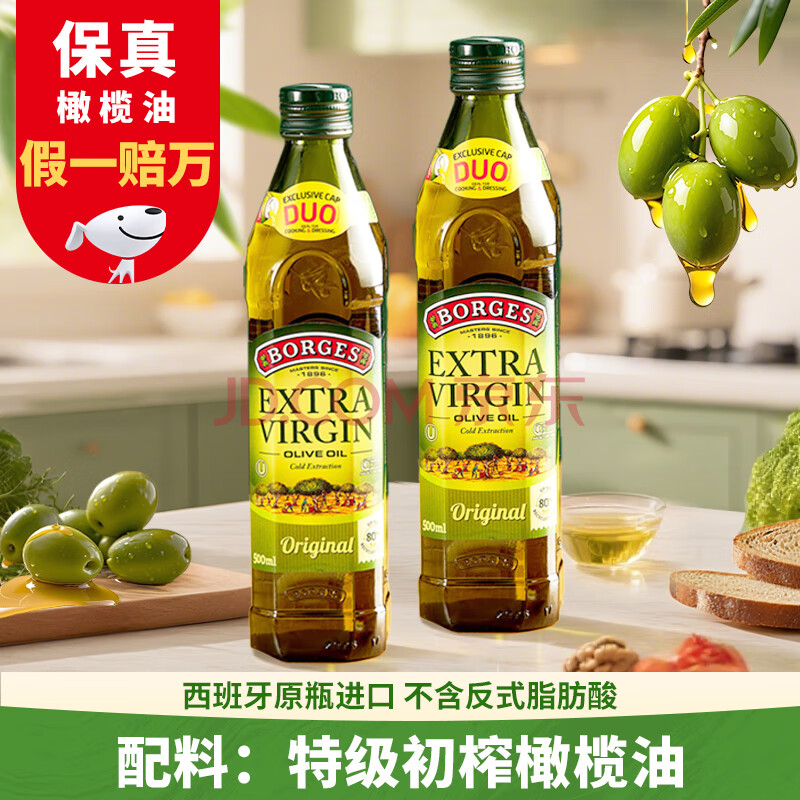 商品相册:伯爵(BORGES)【保真橄榄油】西班牙进口 特级初榨橄榄油500ml*2瓶 食用油团购第
