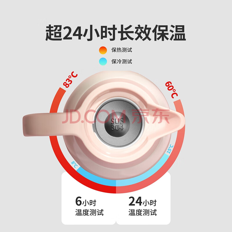 商品相册:炊大皇 保温壶304不锈钢家用大容量防滑底保温壶 蜜桃粉 2.2L第