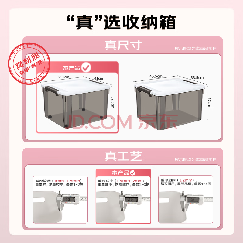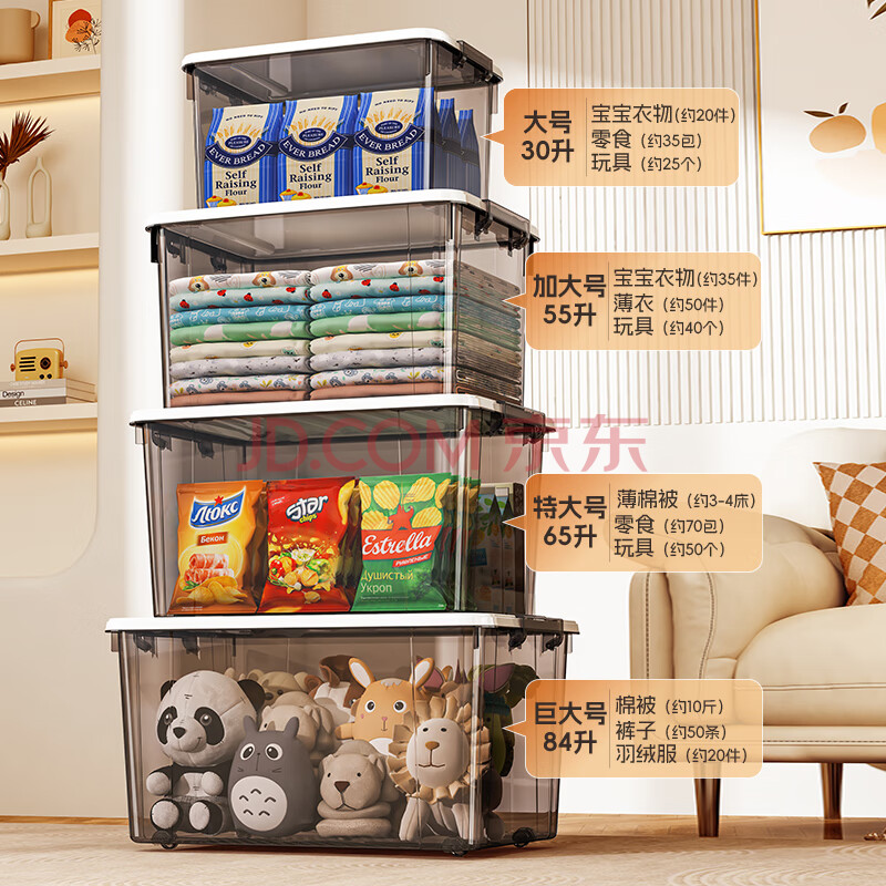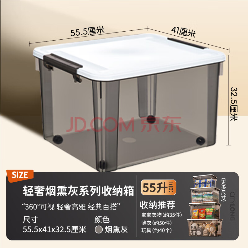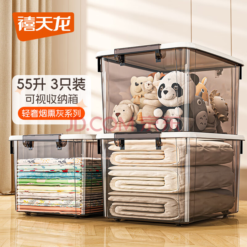 商品相册:禧天龙塑料衣物收纳箱玩具车载整理箱55L 烟熏灰 3个装 带轮第1张/共4