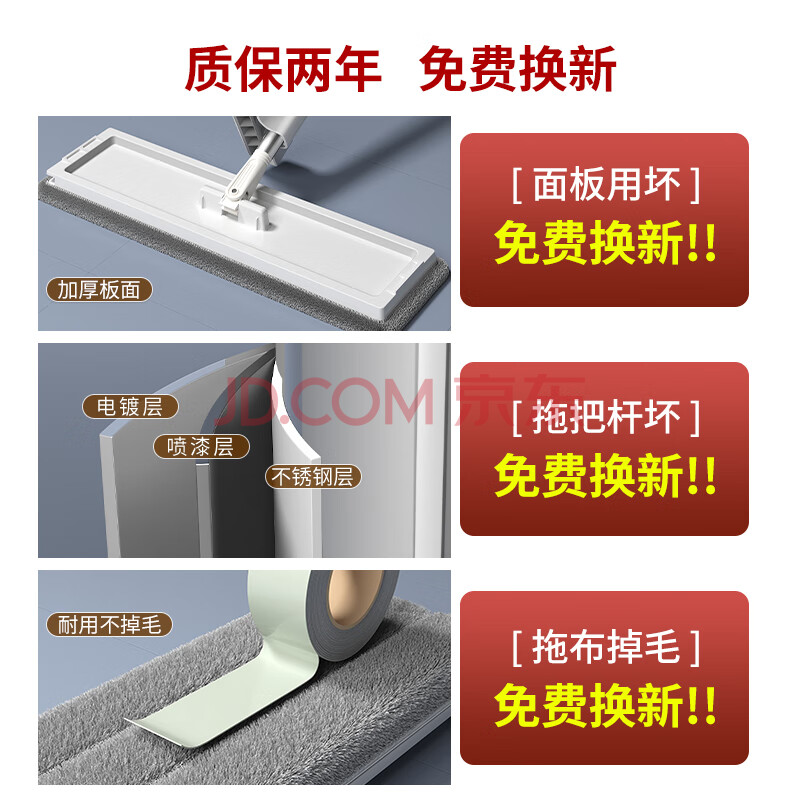 商品相册:东方亮洁拖把家用一拖净免手洗平板拖把加大50cm拖布墩布吸水清洁拖地神器第