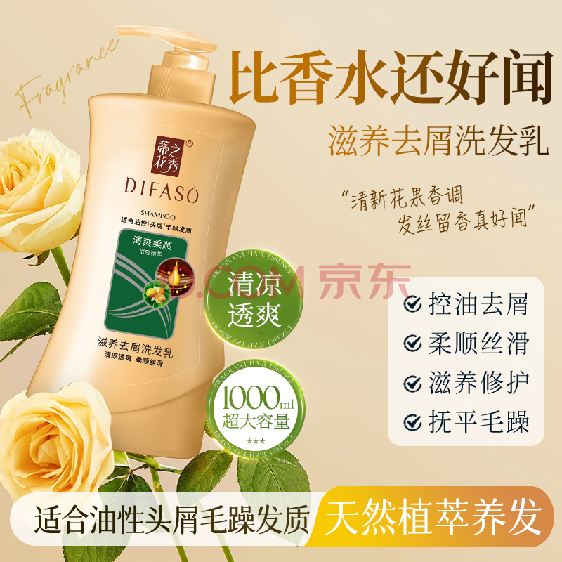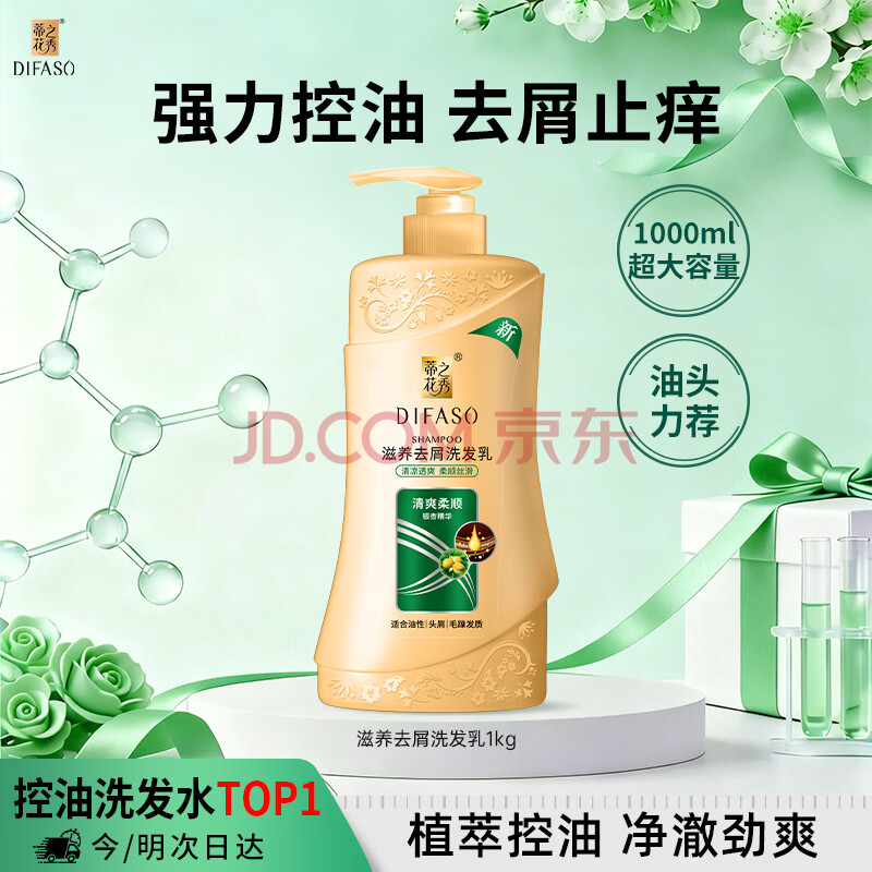 商品相册:蒂花之秀洗发水滋养去屑洗发乳1kg清爽柔顺控油去油去屑洗发露大瓶家庭装第