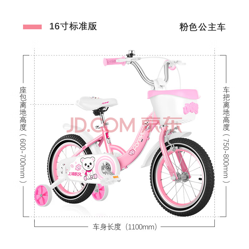 商品相册:永久(FOREVER)儿童自行车4-8岁男女款宝宝童车小孩公主款脚踏车辅助轮16寸粉色第