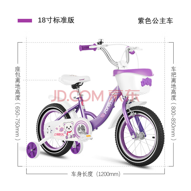 商品相册:永久(FOREVER)儿童自行车4-8岁男女款宝宝童车小孩脚踏车可拆辅助轮18寸紫色第