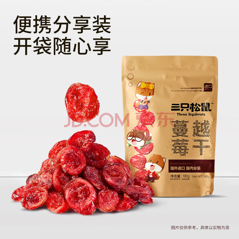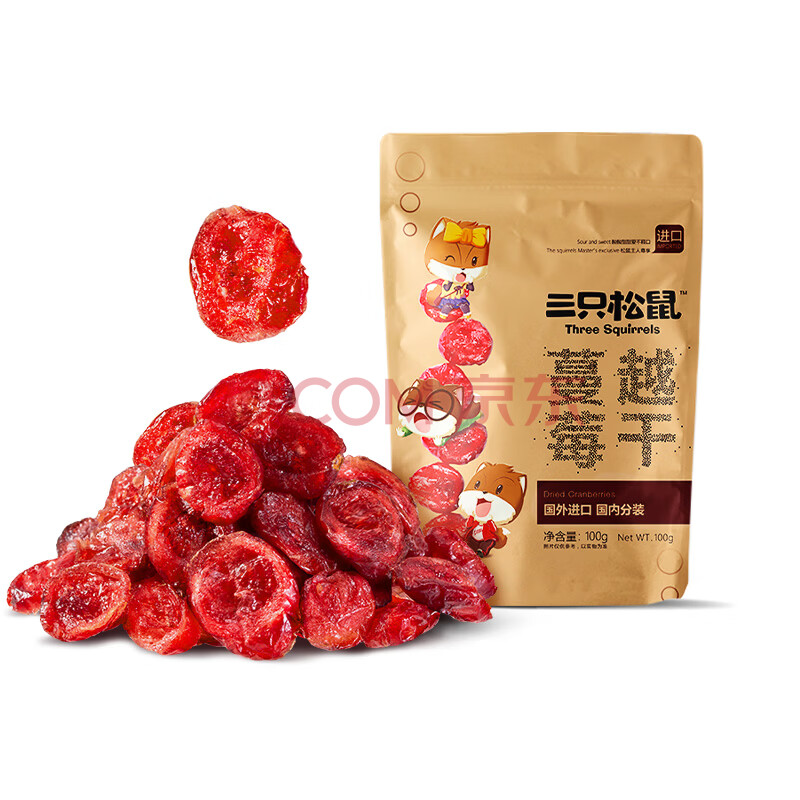 商品相册:三只松鼠蔓越莓干100g/袋 蜜饯果干休闲零食酸甜果脯网红休闲零食小吃第1张/共5