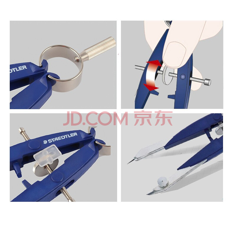 商品相册:施德楼(STAEDTLER)中车圆规 精准锁距工程绘图工具套装 金属机械制图学生考试用铅芯款圆规-蓝色55600第