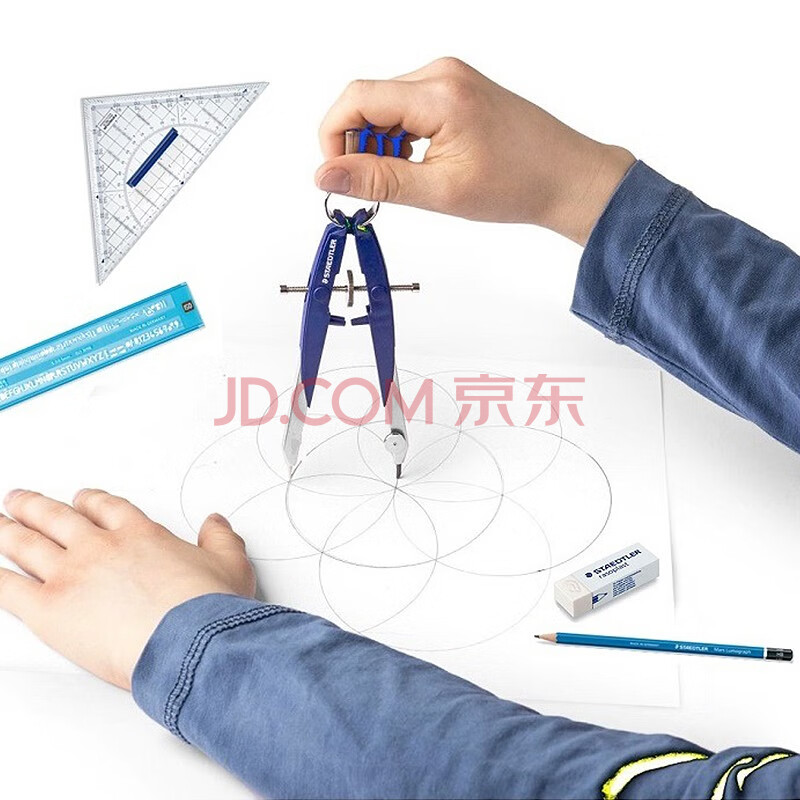 商品相册:施德楼(STAEDTLER)中车圆规 精准锁距工程绘图工具套装 金属机械制图学生考试用铅芯款圆规-粉紫色55600-N2第