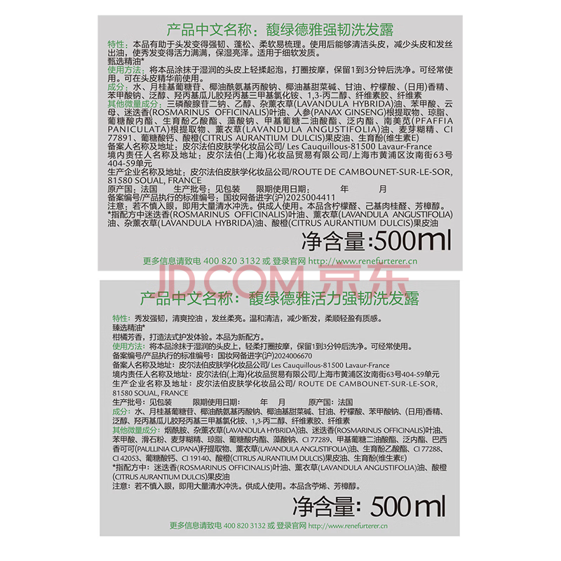 商品相册:馥绿德雅(RENE FURTERER)小绿珠500ml+小白珠洗发水500ml 防断发强韧发根持久控油蓬松囤货第1张/共5
