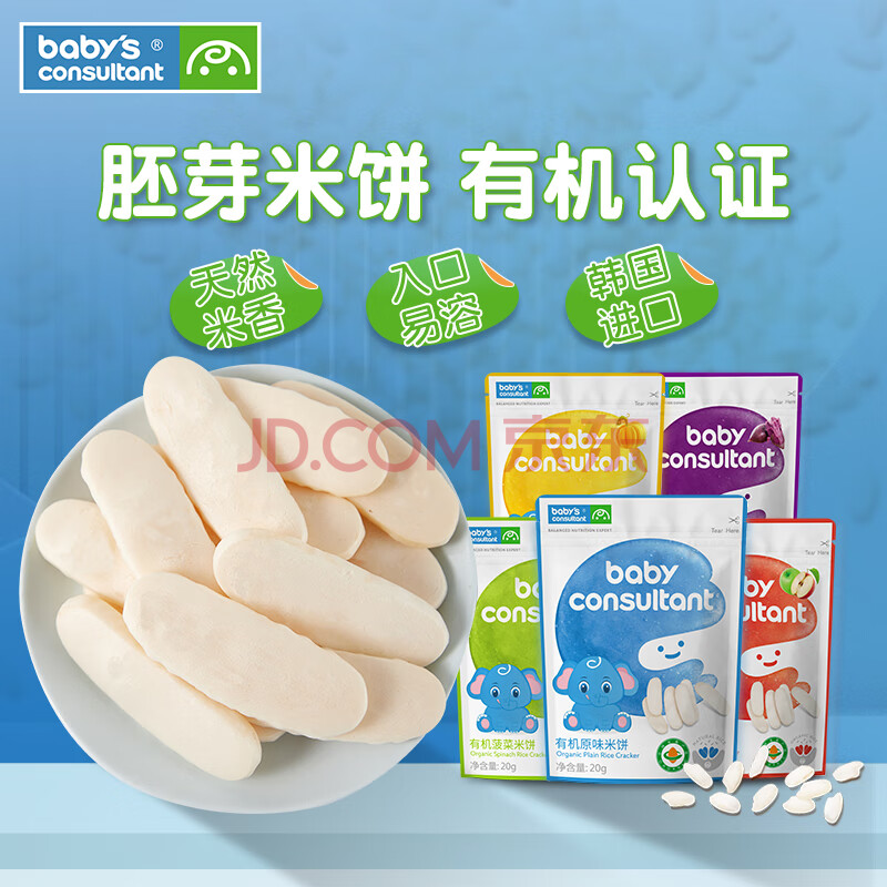 商品相册:宝贝顾问有机米饼原装进口宝宝零食出游儿童零食磨牙棒 原味20g第