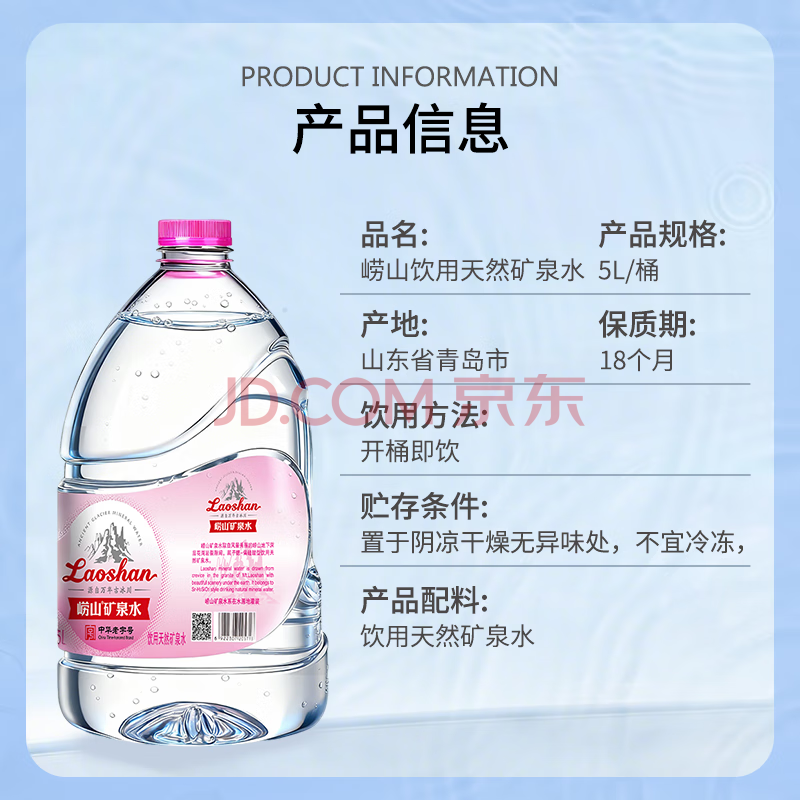 商品相册:崂山 中华老字号 天然矿泉水桶装水 办公家用大桶水 5L*2桶 热门商品第