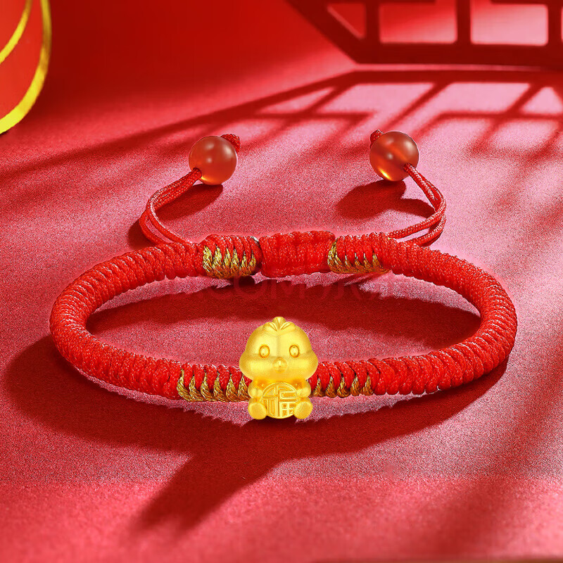 商品相册:蒂蔻(Tico)足金十二生肖鸡黄金转运珠手链红绳3D金鸡本命年手链生日礼物第1张/共7