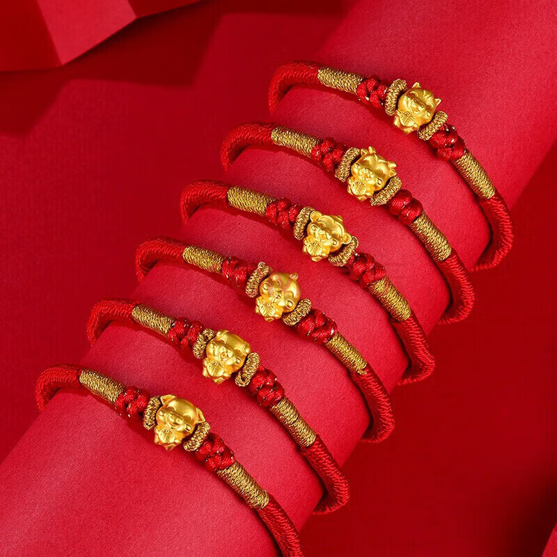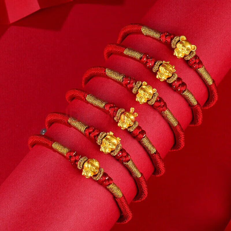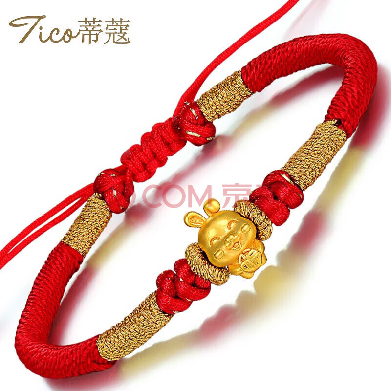 商品相册:蒂蔻(Tico)足金十二生肖兔黄金转运珠手链红绳3D金兔本命年手链生日礼物第