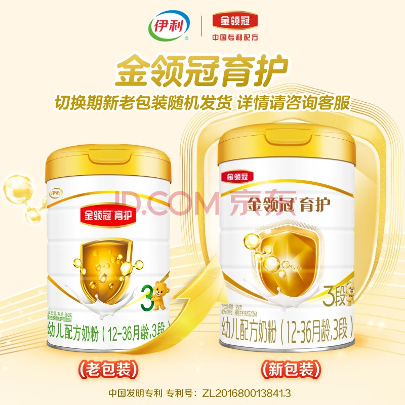 商品相册:伊利金领冠育护幼儿配方奶粉3段12-36个月960g*6罐【5倍DHA好脑力】第