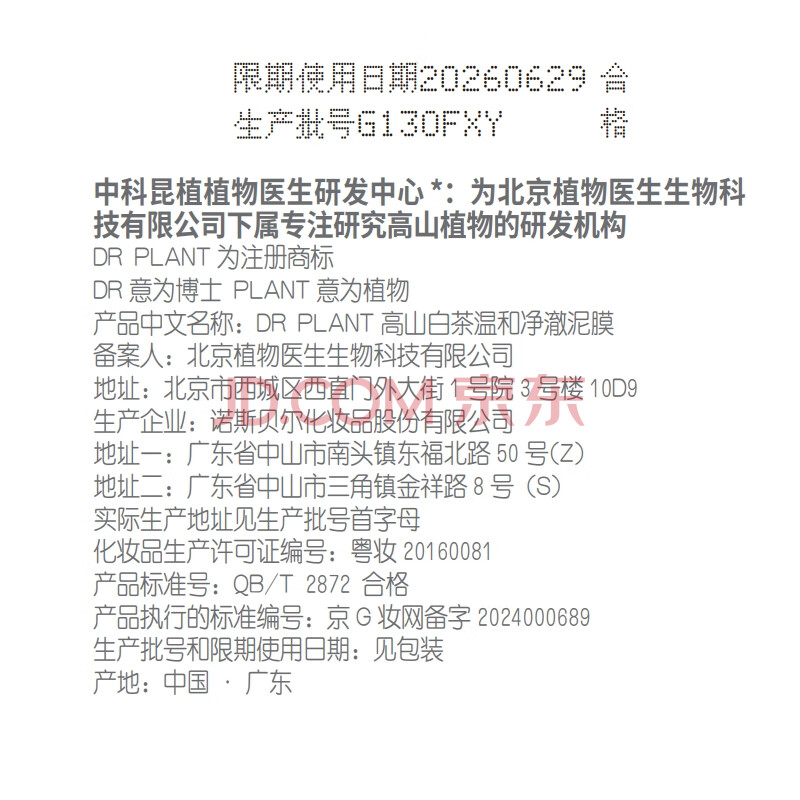商品相册:植物医生白茶泥膜清洁毛孔控油保湿改善黑头男女通用泥膜120ml第