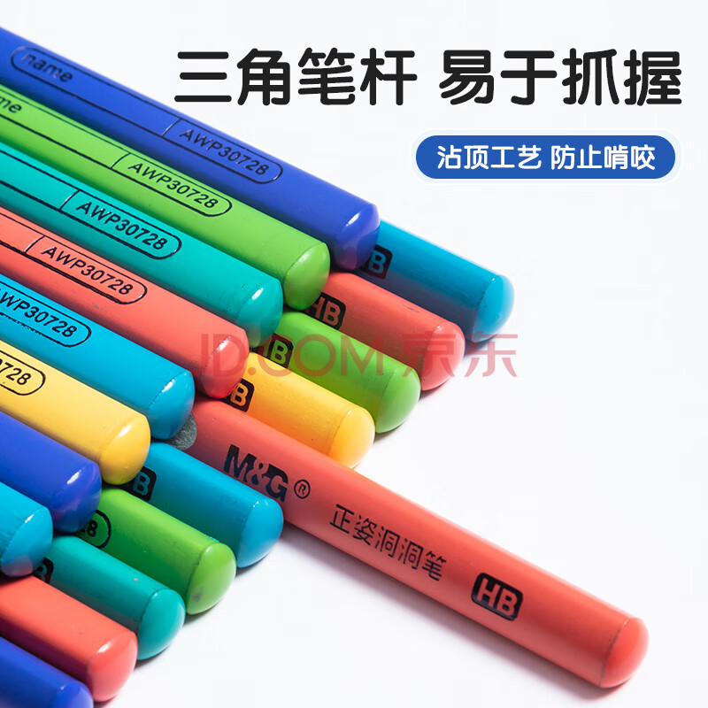 商品相册:晨光(M&G)文具HB洞洞铅笔30支小学生开学练字铅笔儿童正姿三角杆沾顶易抓握 AWP30718 【升级彩杆】30支2B第
