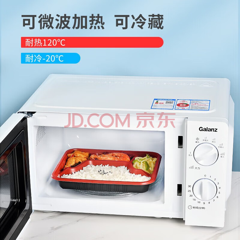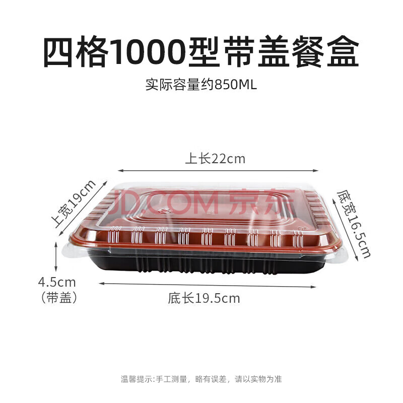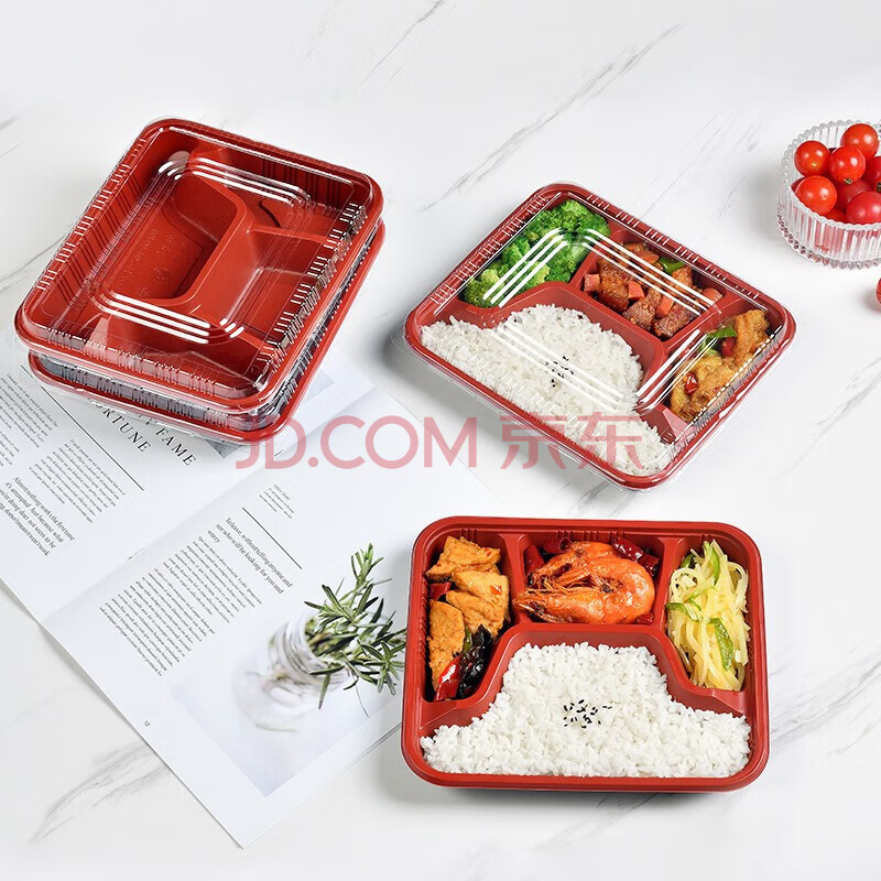 商品相册:特美居(temeiju)一次性饭盒四格吸塑餐盒加厚带盖打包盒黑红100套装1000型可微波第
