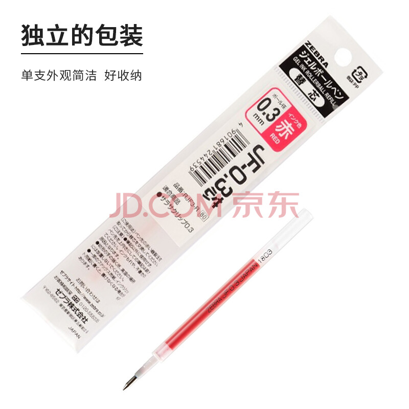 商品相册:斑马牌(ZEBRA)中性笔替芯(适用于JJH15)0.3mm子弹头啫喱笔芯 JF-0.3芯 RJF3 红色 10支装第