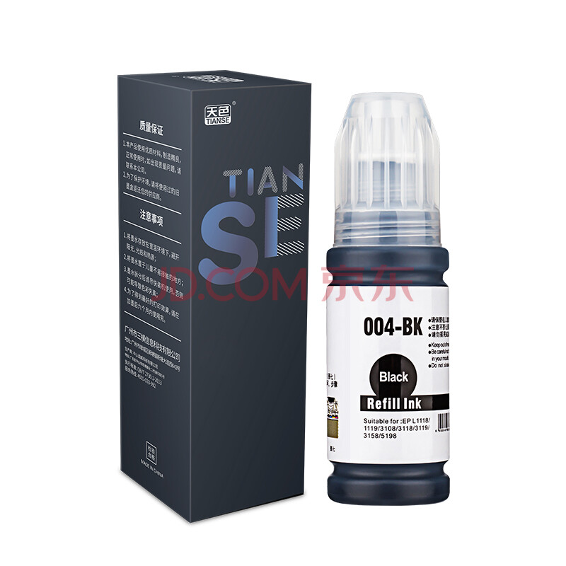商品相册:天色 004墨水 黑色适用爱普生L3153 L3116 L3106 L3108 L3117 L3118 L3119 L3158 L1118 L1119打印机第