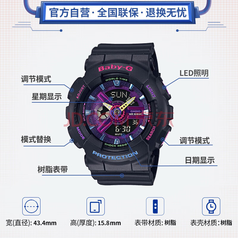商品相册:卡西欧(CASIO)手表女BABY-G运动电子学生日韩表送女友礼物BA-110XTM-1A第