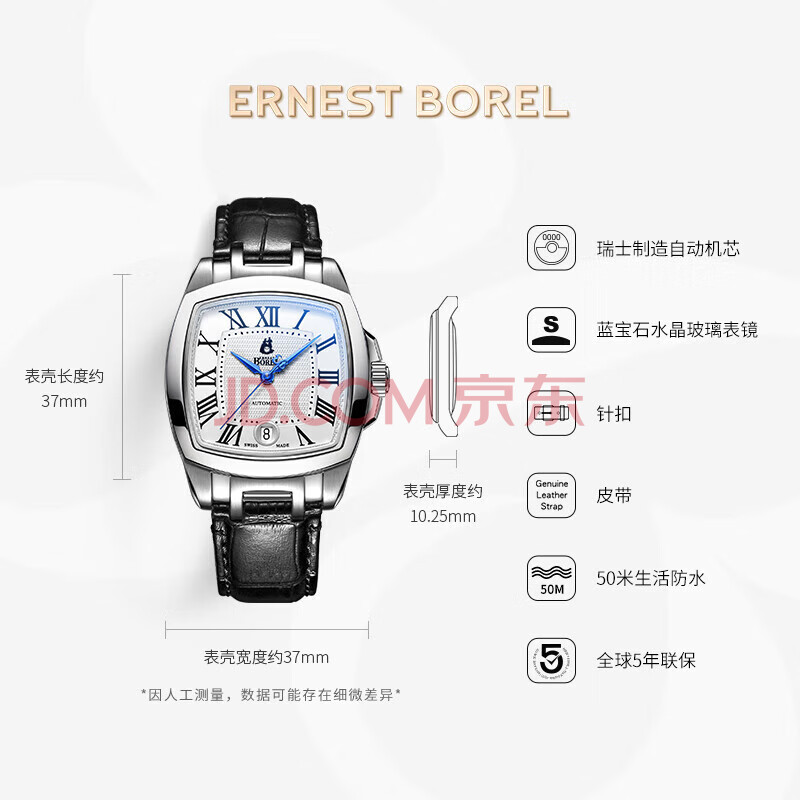 商品相册:依波路(ERNEST BOREL)瑞士手表男 新春礼物 传奇系列 机械手表经典方盘商务送男友第