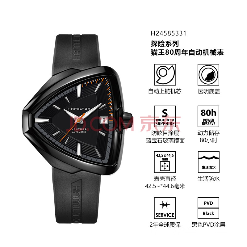 商品相册:汉米尔顿(Hamilton)探险系列猫王80周年纪念版黑盘黑色立体盾型表壳瑞士表男机械表第