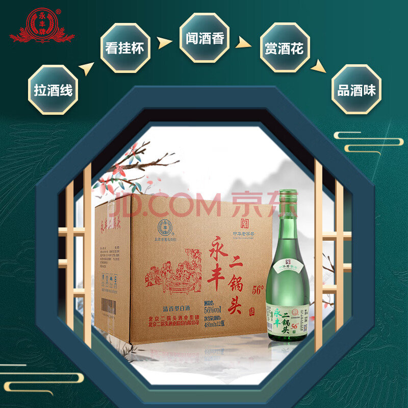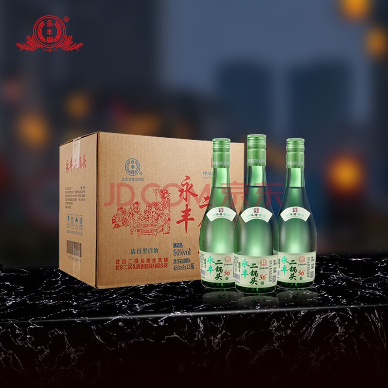 商品相册:永丰牌 北京二锅头 清雅绿波 清香型白酒 56度 480ml*12瓶 整箱装第