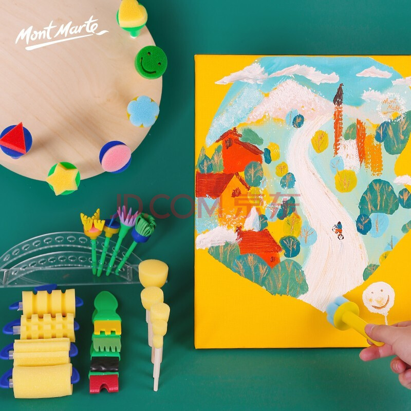 商品相册:【全网低价】蒙玛特(Mont Marte)美术海绵刷18件 滚筒儿童画画海绵棒水粉水彩颜料画刷套装 早教绘画涂鸦工具SX-PNX18JT美术写生第