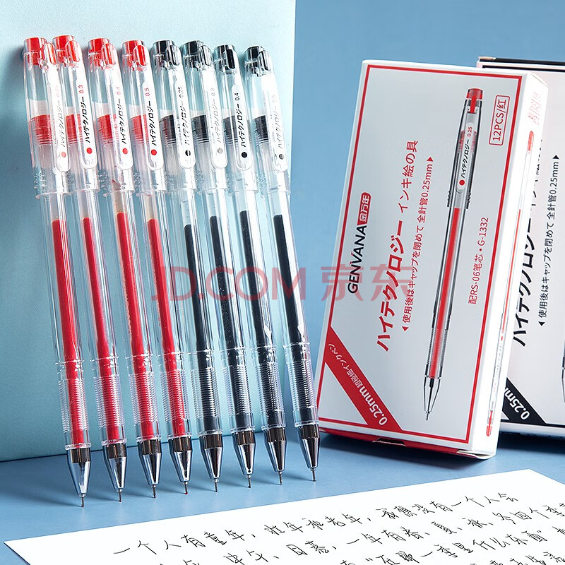 商品相册:金万年【12支财务笔】0.4mm红色中性笔全针管财务极细笔水性笔会计水笔细头记账笔批改订正G-1334-003第