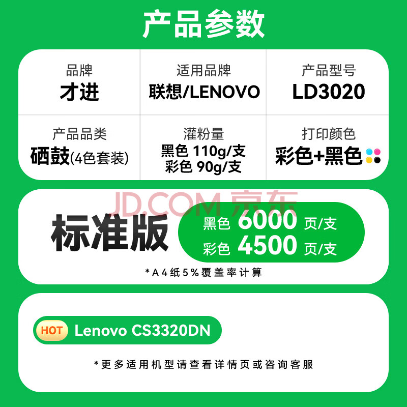 商品相册:才进LD3020硒鼓四色套装适用联想CS3320DN打印机粉盒CS3320激光复印一体机墨粉盒碳粉墨粉彩色粉筒粉仓晒鼓第