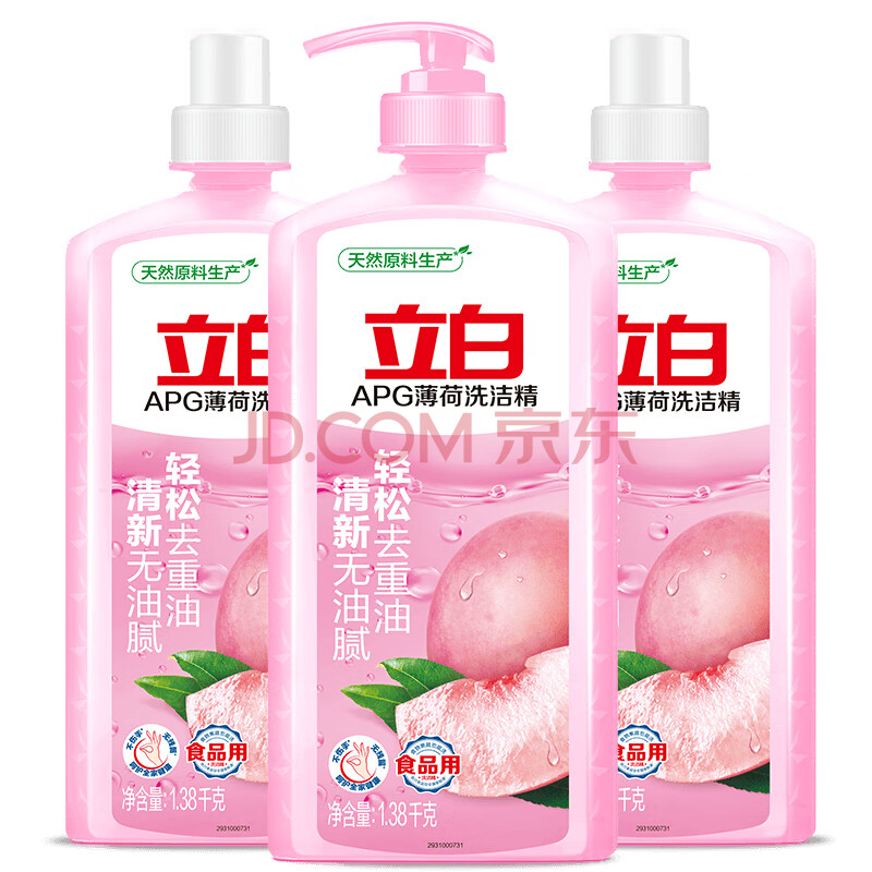 商品相册:立白APG洗洁精1.38kg*3瓶天然薄荷清香食品可用高效去油除味第