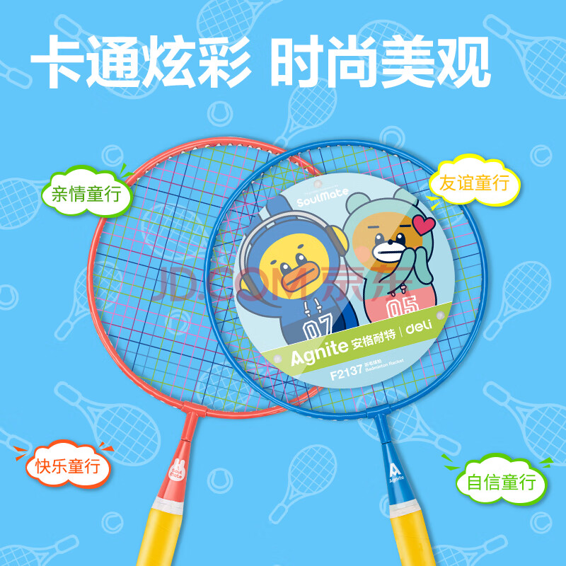 商品相册:得力(deli)儿童羽毛球拍大头拍儿童玩具(双色对拍)送球 新旧款随机第
