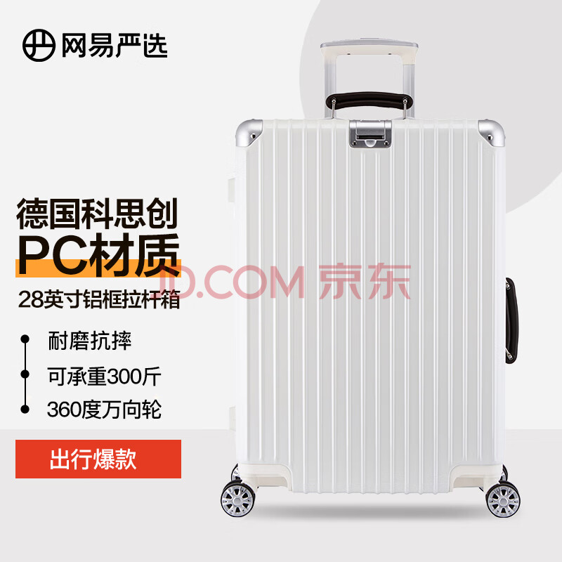 商品相册:网易严选大容量铝镁框小金刚PC行李箱商务拉杆箱旅行箱28英寸亮面优雅白第