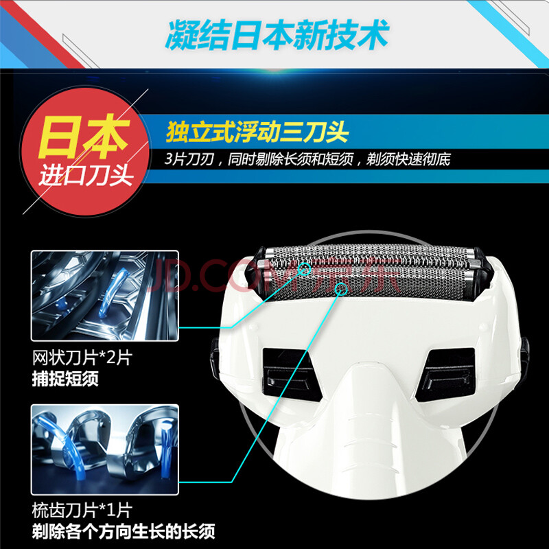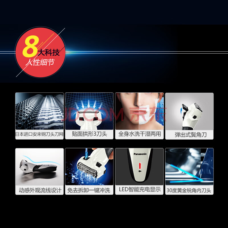 商品相册:松下(Panasonic)经典3系电动剃须刀往复式男士电动刮胡刀进口三刀头全身可水洗超长续航送男友男士生日礼物WSL3D第