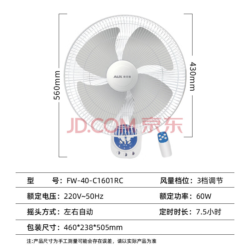 商品相册:奥克斯(AUX)奥克斯(AUX)电风扇/四扇叶遥控壁扇/工业家用壁挂式风扇/大风量壁扇FW-40-C1601RC 第