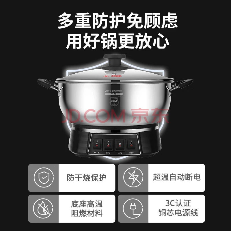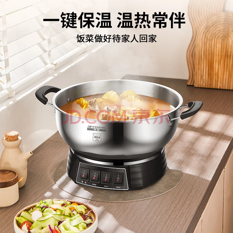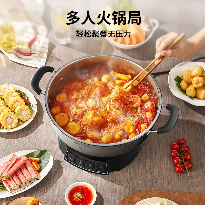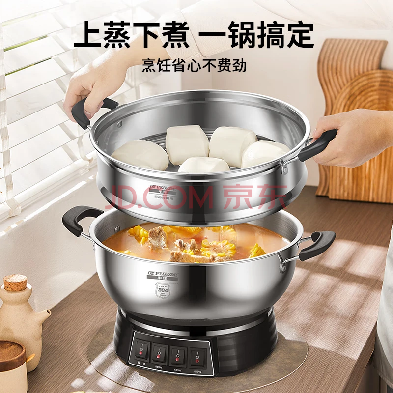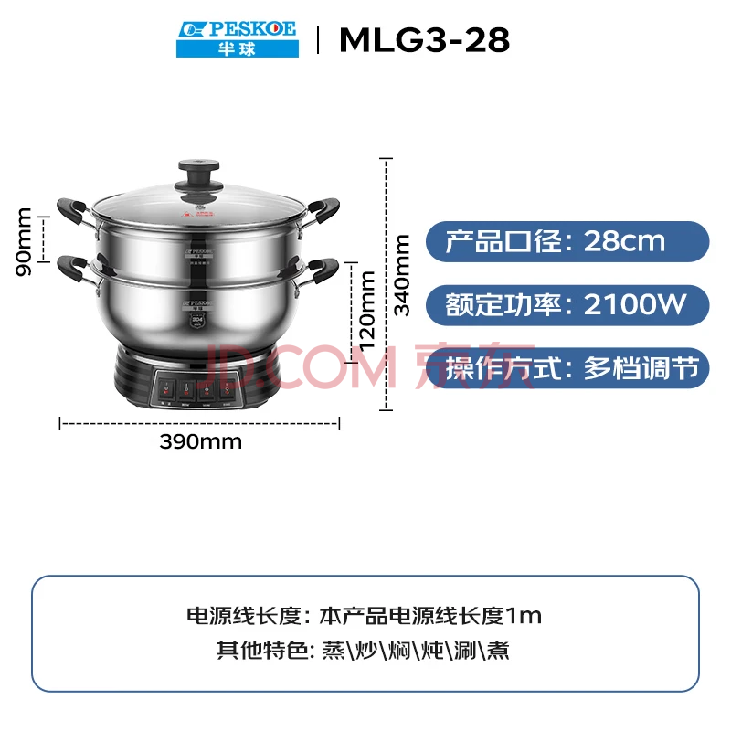 商品相册:半球(PESKOE)电蒸锅多功能电热锅 28CM电锅多用途锅 电炒锅 电煮锅MLG3-28 带蒸笼第